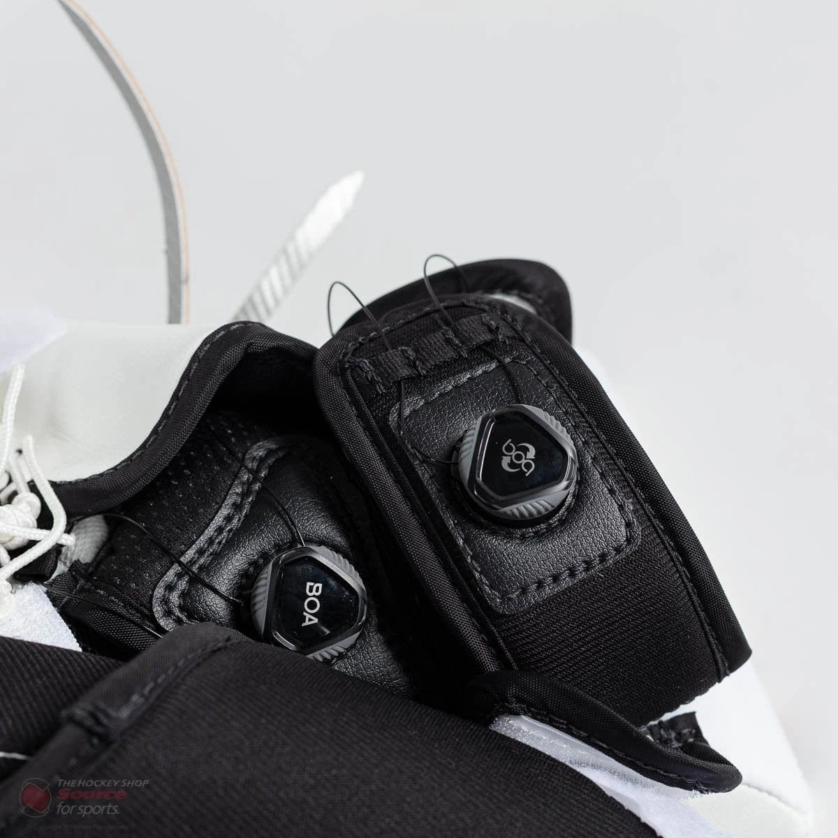 The biggest feature that the G-NETik IV catch glove brings from the Opt1k line is the Boa attachment strapping. The Boa allows for unparalleled grip on the hand during play, and the ability to fine tune exactly how tight the glove should feel both at the wrist, and the backhand. The locked in attachment works with the trapper design to provide a game ready closure that any goalie will love after getting it in their hands.