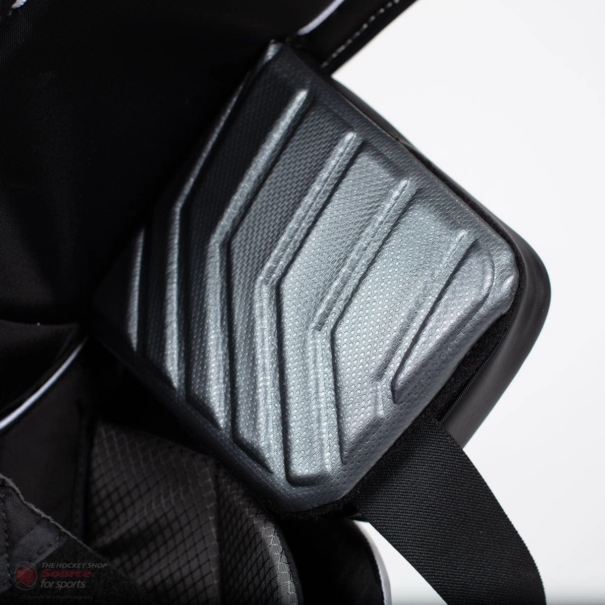 CCM uses recessed foam with a removable knee cradle wrap to allow customizability and comfort. This deep knee cradle is designed to help close the five hole and prevent you from falling off the knee stack while still having mobility and not feeling restricted.