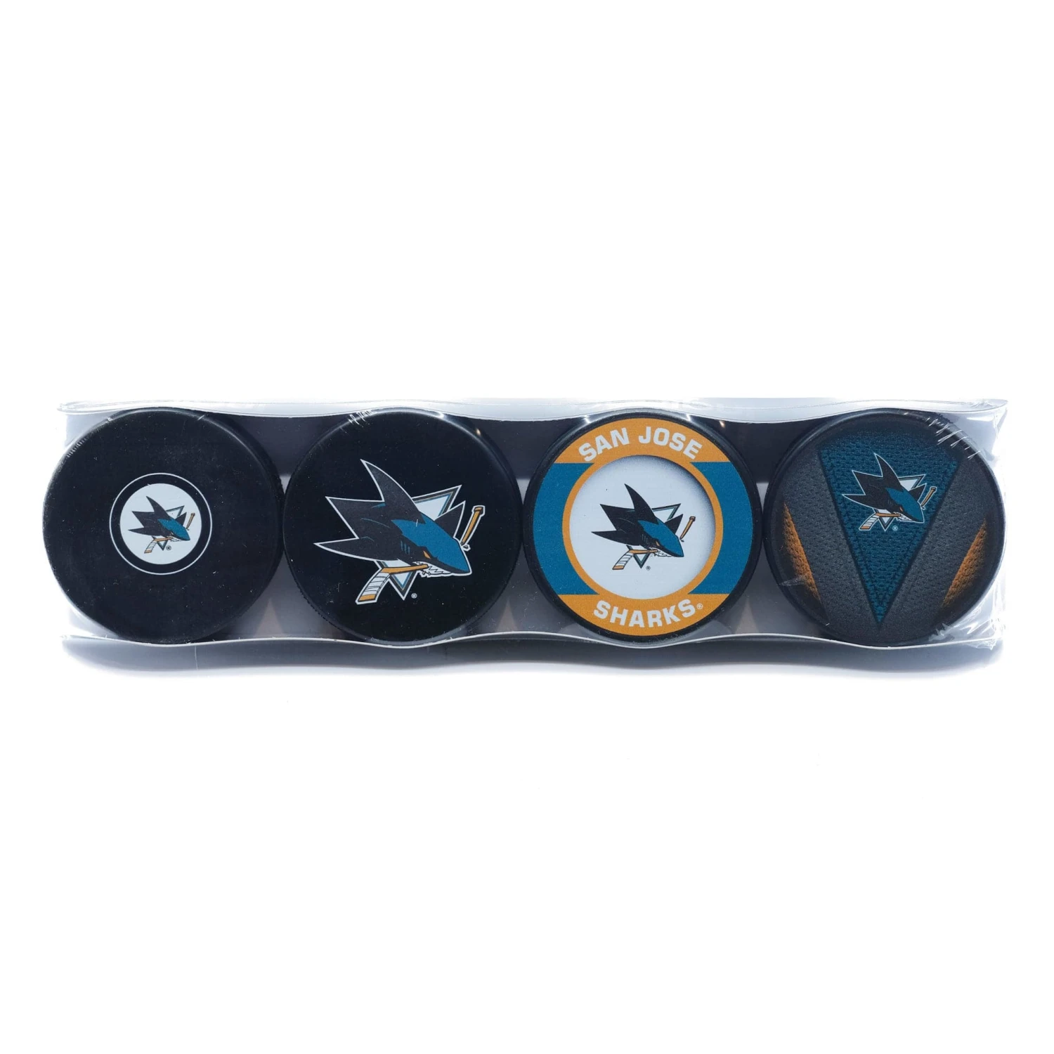 San Jose Sharks Inglasco NHL Logo Hockey Puck (4 Pack)